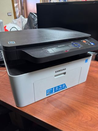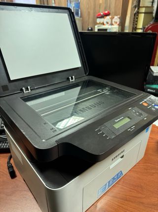 Stampante laser multifunzione Samsung. SI ACCENDE MA NON È STATA TESTATA. IL COPERCHIO DELLO SCANNER NON SI AGGANCIA E SI SOLLEVA TUTTO. VENDO PER PEZZI DI RICAMBIO O DA RIPARARE. - Funzione di stampa, scansione, copia e fax - Connettività Wi-Fi.