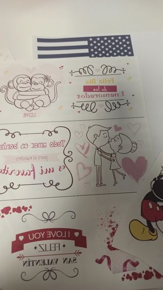 Set di 7 fogli di trasferimento per stampanti inkjet. Ideali per tessuti di cotone, misto e sintetici. Adatti per mouse pad, pelle e sottobicchieri. Facili da trasferire e piacevoli al tatto. Istruzioni per l'uso e il lavaggio incluse. SPEDIZIONE IN TUTTA LA SPAGNA. CREO PACCHI DI VARI PRODOTTI IN UN SOLO SPEDIZIONE. Ho molti tipi di fogli, guarda il mio profilo!