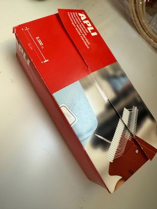 Scatola da 5.000 unità di graffette tessili standard del marchio APLI. - Graffette da 50 mm. - Per il fissaggio di tessuti.