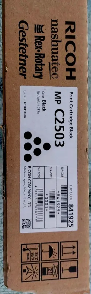 Toner nero per stampanti Ricoh. - Modello: MP C2503 - Colore: Nero - Peso netto: 285g - Codice EDP: 841925 - Nuovo in confezione originale