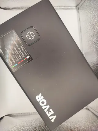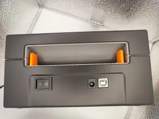 Stampante termica Vevor di colore nero. - Indicatore luminoso per stato. - Pulsante di accensione/funzione.