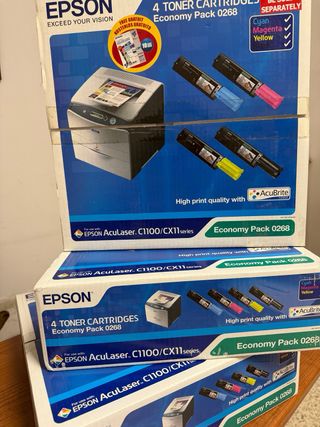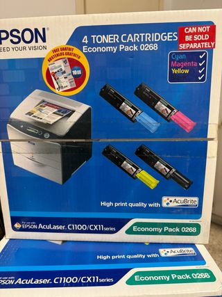 Confezione di 4 cartucce toner Epson AcuBrite. - Modello: Economy Pack 0268 - Colori inclusi: Cyan, Magenta, Yellow, Black - Compatibili con stampanti Epson AcuLaser C1100/CX11 series