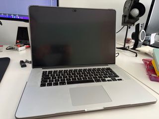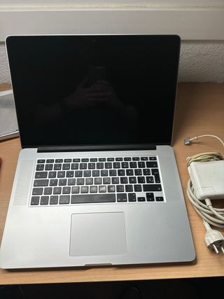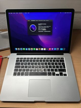 MacBook Pro di metà 2015, in perfette condizioni, con alcuni segni d'uso nella parte inferiore. Fornito con sistema operativo Monterey. Modello A1389, colore argento. - Schermo Retina da 15 pollici. - Processore Intel Core i7. - 8 GB di memoria RAM. - SSD da 248 GB. - Tastiera retroilluminata. Fornito con caricabatterie. SPEDIZIONE DISPONIBILE 📦 ✅