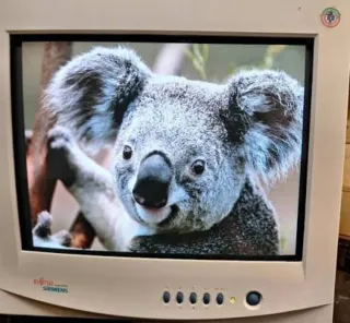 Monitor desktop Siemens con base. Design classico. Schermo di buone dimensioni. Tubo in perfetto stato. Ideale per giochi retrò. Comando video funzionante.