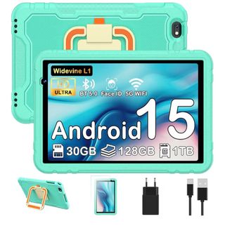 Ultimo Android 15 Tablet 30GB RAM + 128GB NUOVA certificato GMS per migliorare ulteriormente le prestazioni del sistema con funzioni di sicurezza e privacy avanzate. 30GB RAM + 128GB (1TB espandibile) processore octa-core. Schermo HD da 10 pollici + altoparlanti dual + Widevine L1. Batteria da 8000mAh + custodia protettiva EVA resistente alle cadute e antiscivolo, supporto di rotazione a 360°. Fotocamera frontale HD da 5 MP; fotocamera posteriore da 8 MP. Supporta 5G WIFI 6. Bluetooth 5.0. Include custodia e cardatore. NUOVA DA PROVARE.
