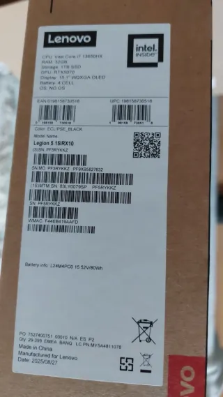 Portátil Lenovo Legion 5 15IRX10 Intel Core i7 13650HX 32 GB di RAM 1 TB SSD di archiviazione GPU RTX 5070 Display OLED da 15,1 pollici