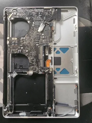 Base inferiore MacBook Pro 15,4 pollici, trackpad, tastiera, scheda logica per parti. Scheda logica non funzionale. Trackpad e tastiera funzionanti, credo. Per ricambi, parti.