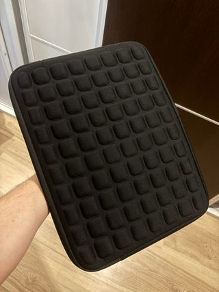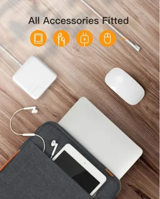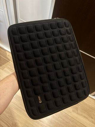 Custodia per portatile di colore grigio scuro, con capacità per dispositivi da 15 a 16 pollici. Include maniglia di trasporto e tasca. - Materiale esterno in tessuto testurizzato. - Chiusura con cerniera. - Tasca frontale. - Maniglia in similpelle. - Bordi rinforzati. - Dimensioni interne: 38,5 x 26,5 x 3 cm. - Acquistata su Amazon. - Marca Inateck. Come nuova! A metà prezzo!