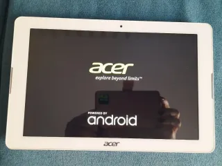Tablet del marchio Acer in bianco. Schermo da 10 pollici (dimensione totale 12"). Fisicamente in ottime condizioni, qualche leggero graffio sullo schermo quasi impercettibile. Sistema Android OBSOLETO (5.1). Non consente aggiornamenti. È possibile scaricare alcune app compatibili, ma poche. È possibile navigare e guardare video su YouTube accedendo dal browser. Nient'altro. Senza caricabatterie e cavo. Forse utile per il riutilizzo dei componenti.