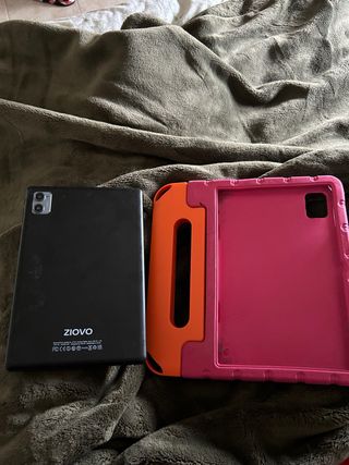 Tablet Ziovo con schermo da 10 pollici e sistema Android. Lo schermo è rotto e quindi non si accende. Si vende per pezzi o per riparare lo schermo. 20 GB di RAM più 128 GB di ROM. Con controllo parentale e custodia protettiva rosa. Colore nero. Include custodia protettiva rosa.