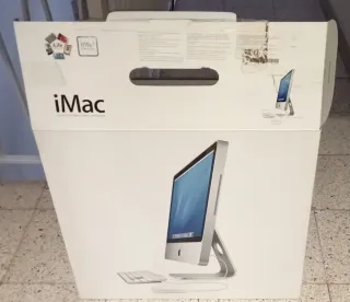 Scatola originale di un iMac Apple da 20 pollici (modello A1224). Presenta alcuni piccoli difetti nella parte superiore di un lato e sul coperchio superiore, a causa di un nastro adesivo applicato. Contiene i tre tappi originali. Nel mio profilo c'è un'altra scatola in condizioni peggiori, se ti interessa di più.