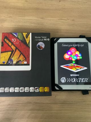 Tablet Woxter Nimbus 98 Q in bianco. Include custodia. - Processore QuadCore Cortex A9 1.6 GHz. - Grafica Mali 400 Quad 500 MHz. - Webcam 2.0 MP. - Memoria interna 16 GB. - Connettività Bluetooth. - Sistema operativo Android 4.4. - Schermo XL-180 da 9,7 pollici. - Risoluzione schermo 2048x1536.