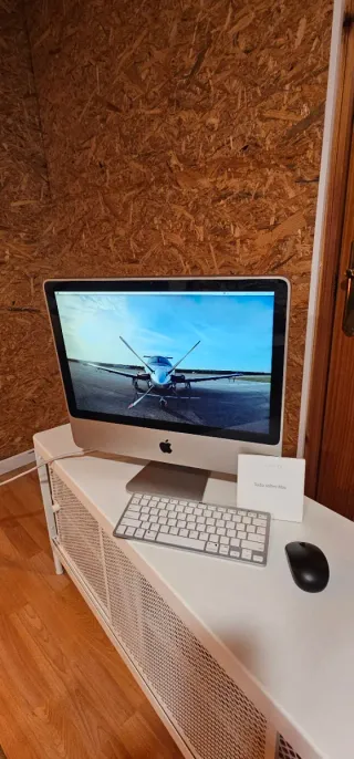 iMac Apple in alluminio di circa 20 pollici, in buone condizioni generali e completamente funzionale, come si può vedere nelle foto. Include: Computer iMac, tastiera Apple, mouse, cavo di alimentazione. Il computer si accende correttamente e il sistema si carica senza problemi. Presenta segni normali di usura sul retro e sul supporto, tipici del passare del tempo (vedi foto), ma lo schermo si vede bene e il funzionamento è corretto. Ideale come computer di base, per compiti semplici, ufficio, riproduzione multimediale o come dispositivo secondario. L'altoparlante non funziona. Viene consegnato così com'è nelle immagini. Preferibile consegna in m.
