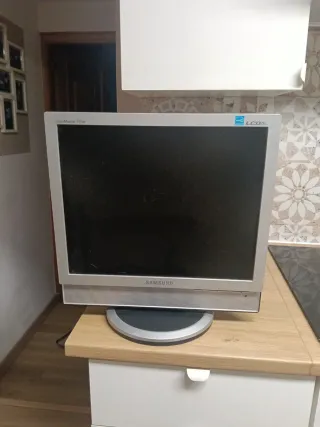Monitor Samsung SyncMaster da 20 pollici con schermo LCD. Piccoli graffi sullo schermo. Ingresso per antenna. Design argento e nero.