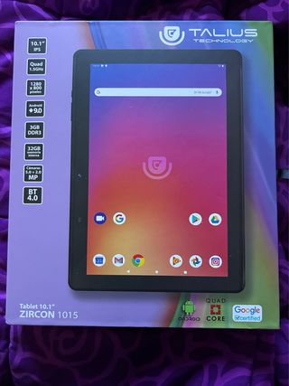 Tablet Talius Zircon 1015 in colore nero. Schermo da 10,1 pollici. - Schermo IPS da 10,1 - Processore Quad Core 1,5GHz - Risoluzione 1280 x 800 pixel - Android 9,0 - 3GB di RAM DDR3 - 32GB di memoria interna - Fotocamere da 5,0 + 2,0 MP - Bluetooth 4,0