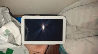 Schermo intelligente Google Nest Hub in bianco. Ideale per la casa. - Schermo touch. - Altoparlante integrato. Presenta piccoli difetti ma funziona perfettamente.