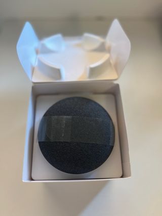 Altoparlante intelligente Google Home Mini in colore carbone, con il suo caricatore. In perfette condizioni.