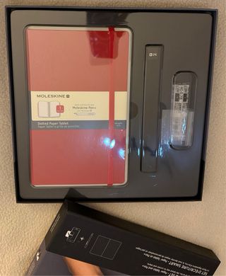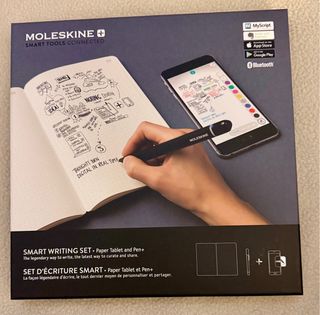 Set Moleskine Smart Writing composto da tablet e penna. - Tecnologia MyScript. - Compatibile con App Store e Google Play. - Connessione Bluetooth. Insieme al set ci sono n.2 “Paper Tablet” aggiuntivi del costo di € 29 ciascuno. Uno dei due è nuovo, ancora sigillato, e l’altro é scritto solo nella prima pagina. Come nuovo