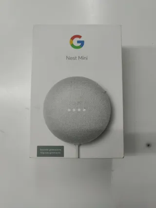 Altoparlante intelligente Google Nest Mini, seconda generazione. Design compatto ed elegante. Pacchetto aperto ma mai utilizzato. Colore grigio. Cavo di alimentazione incluso.
