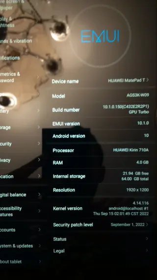 Tablet Huawei MediaPad T5 in bianco. Ideale per l'uso quotidiano. - Modello: AGSL-W09 - Versione EMUI: 8.0.0 - Versione Android: 8.0.0