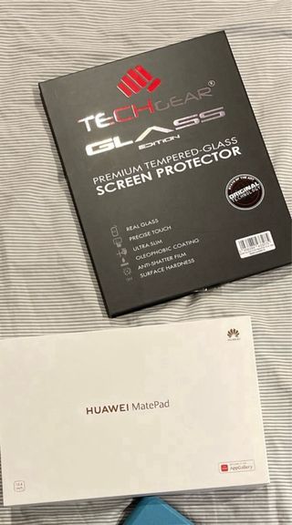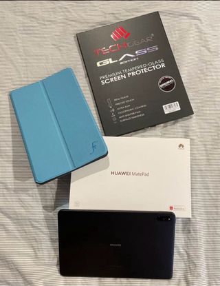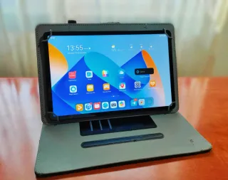 Vendo tablet Huawei MatePad in colore nero, con custodia protettiva blu e protezione schermo in vetro temperato. È nuovo, molto ben curato, usato solo raramente. Ha un ottimo display e un suono spettacolare.