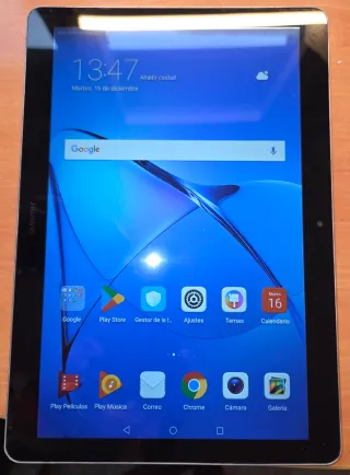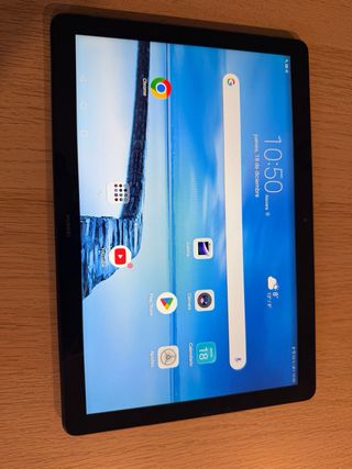 Tablet Huawei Mediapad T5 in colore nero. Ideale per l'uso quotidiano. - Schermo da 10,1 pollici. - Processore Octa-core. - 3GB di RAM e 32GB di spazio di archiviazione interno. - Fotocamera posteriore da 5MP e anteriore da 2MP. - Batteria da 5100 mAh. - Connettività Wi-Fi e Bluetooth. Utilizzato poco oltre che per guardare serie, viene fornito ripristinato alle impostazioni di fabbrica.