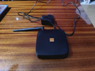 Router Huawei di colore nero con il logo di Orange. Include antenna e adattatore di corrente.
