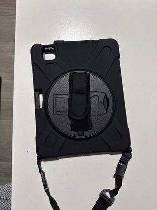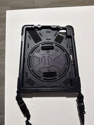Custodia molto resistente e protettiva per iPad Air. - è completamente NUOVA, non aperta. - Design robusto in colore nero. - Include un supporto girevole sul retro. - Include una cinghia regolabile per la spalla. - ha tutto il telaio rivestito ed è molto resistente. Il prezzo in negozio era di 30€
