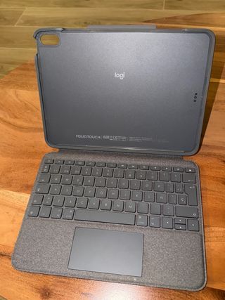 Custodia con tastiera Logitech Folio Touch per iPad. Come nuova, poco usata e con scatola. - Tastiera spagnola. - Compatibile con iPad Air di 4/5 generazione e M2/M3 - Design elegante in colore grigio.