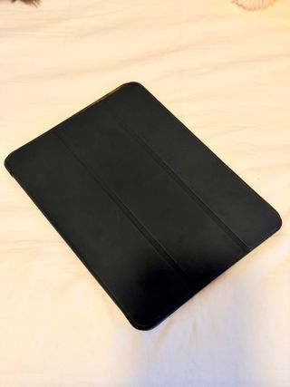Cover protettiva nera per iPad Air. Il suo design consente diversi angoli di visualizzazione. Smart Folio ❗ Penso che funzionerebbe ma non ne sono sicuro. ❗ iPad Air 4 (2020) — 10.9" di diagonale iPad Air 5 (2022) — 10.9" di diagonale iPad Pro da 11 pollici (1a generazione, 2018).