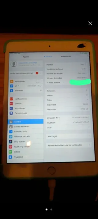 Tablet iPad mini 3 con 64 GB di spazio di archiviazione. Schermo danneggiato, ma funziona perfettamente. Video disponibile. Modello: iPad mini 3. Capacità: 64 GB. Spazio disponibile: 57,92 GB. Versione software: 12.6.7.