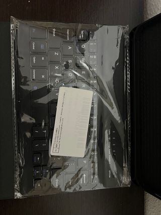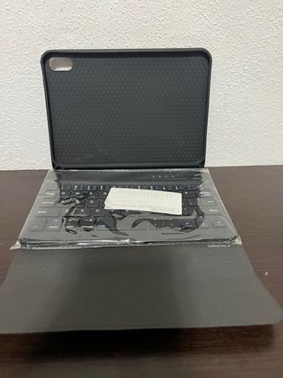 Fondina con tastiera compatibile con iPad Mini di 6ª e 7ª generazione. Tastiera QWERTY spagnola retroilluminata con trackpad. Design con scomparto per matita che permette qualsiasi inclinazione (foto). Cavo USB-A a USB-C incluso. Prezzo nuovo su AliExpress: 35€. iPad non incluso.