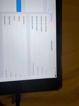 iPad mini 2 in colore argento con 32 GB di spazio di archiviazione. - Modello: iPad mini 2 - Capacità: 32 GB - Spazio disponibile: 26,07 GB - Versione software: 12.5.7 - Numero di modello: ME277TY/A - Numero di serie: F9FT64BXFCM6