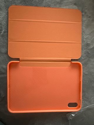 Custodia protettiva per iPad Mini. Colore arancione vibrante. Design pieghevole per supporto. Nuova.