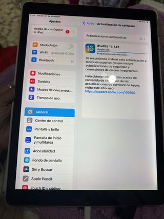 Vendo il mio iPad Pro (2ª Gen) da 12,9 pollici (2ª Generazione) con una grande capacità di 256GB. È un ottimo strumento per lavoro e tempo libero che funziona ancora incredibilmente bene con iPadOS 17.7 (l'ultima versione compatibile). Lo vendo a questo prezzo ridotto a causa di un urto sul retro, ma funzionalmente è perfetto. La batteria ha un normale deterioramento per la sua età, dura circa 7 ore. Ha una piccola zona leggermente 'bruciata' nell'angolo in basso a destra che si nota aumentando molto la luminosità. INCLUDE una custodia premium tipo supporto che nasconde completamente l'urto e protegge l'iPad. Ideale per il disegno (Apple Pencil 1) o per guardare film.