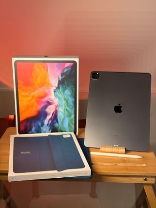 Tablet iPad Pro da 12.9 pollici, quarta generazione, in perfette condizioni. 128GB. In perfette condizioni (con segni di uso normale). INCLUSO: - custodia ufficiale Apple (prezzo consigliato 90€) - "APPLE PENCIL" imitazione con sensore di pressione e carica usb-c - scatola originale dell'iPad e della custodia. - Versione wifi - Schermo Liquid Retina. - Chip A12Z Bionic. - Fotocamera Pro con obiettivo grandangolare e ultra grandangolare. - Compatibile con Apple Pencil (2ª generazione) e Magic Keyboard.