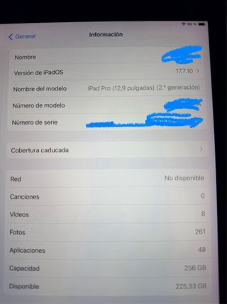 - iPad Pro di seconda generazione con 256GB di memoria del 2017. - Fotocamera frontale e posteriore. - La connessione Wi-Fi non funziona, da controllare perché prima funzionava. - Piccolo segno nell'angolo sinistro quasi impercettibile insieme a due piccoli graffi. - È sempre stato protetto da un vetro temperato. Funziona tutto bene tranne quanto indicato.