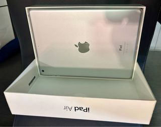 Tablet Apple iPad Air con finitura argento e bianco.Completo di cover nuovissima mai usata.Perfettamente funzionante.Usato pochissimo.Presenta solo lievi segni di usura agli spigoli. - Capacità di archiviazione da 16GB. - Inizializzato ed aggiornato.