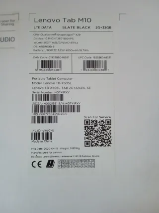 Tablet Lenovo M10 HD nella sua confezione originale. - Schermo ad alta definizione. - Design elegante e leggero.
