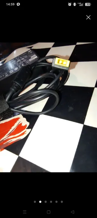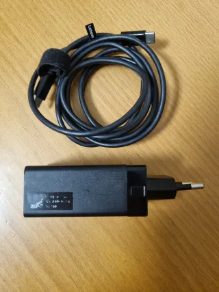 Caricatore di corrente per portatile Lenovo. Il cavo è riposto con velcro. - Adattatore di corrente. - Cavo di alimentazione.