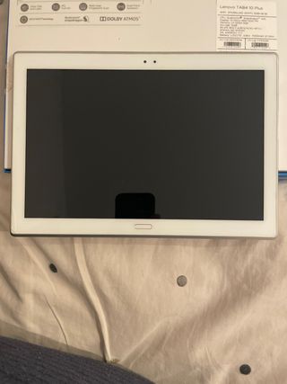 Tablet Lenovo TAB4 10 Plus in bianco. - Schermo da 10 pollici. - Processore Qualcomm Snapdragon. - Suono Dolby Atmos. Tablet perfetta per la 'prima tablet dei tuoi figli'. Ultra sottile e molto leggera. IPS full HD. Altoparlanti frontali doppi. Utilizzata pochissimo, solo per la navigazione dei bambini e la visione di serie/film. Archiviazione 16 GB/sistema operativo Android e memoria LP DPR3 3 GB. È stata resettata e pronta per essere configurata da zero. Ha un piccolo urto nell'angolo in basso a sinistra, minimo. Mostrato in foto. Conservo la scatola originale in perfette condizioni.