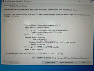Portátil Lenovo in colore grigio e argento. Include il suo caricatore. - Schermo da 15,6 pollici full HD - Tastiera numerica. - Porte USB e HDMI. Con 8 GB di RAM, disco SSD da 256, caricabatterie originale, batteria circa 4 ore, può essere testato senza problemi.
