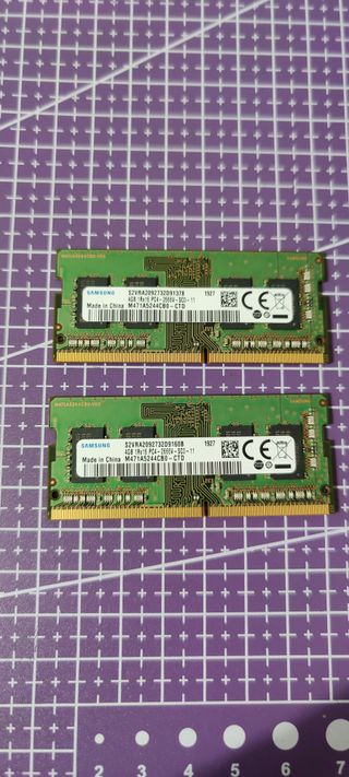 Set di due moduli RAM da 4gb Samsung SODIMM DDR4, latenza Cl19, usati come nuovi. - Capacità: 4GB ciascuno - Velocità: 2666V - Tipo: DDR4 SODIMM
