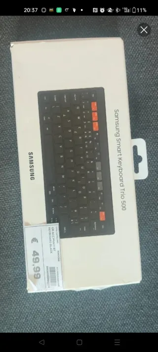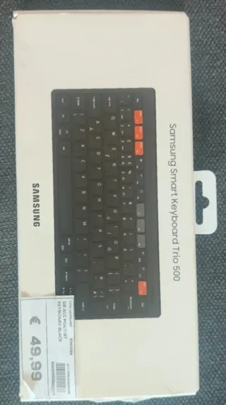 Tastiera Samsung Smart Keyboard Trio 500, ideale per connettere più dispositivi. - Connessione Bluetooth Multiplo - fino a 3 prodotti contemporaneamente - Colore nero con tasti arancioni. - Design compatto e portatile.