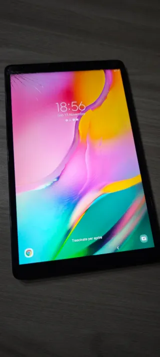 Tablet Samsung Galaxy Tab A. - Modello SM-T510. Funziona perfettamente ma il display è rotto ed alcuni punti del touch non funzionano bene quindi è da sostituire per chi voglia ripararlo oppure per recuperare le parti come la scheda madre o la scocca . La parte posteriore ed i bordi sono in ottime condizioni,non è caduto ma ci sono cadute sopra delle chiavi ed è scoppiato il display . Attenzione tablet gusto per ricambi .