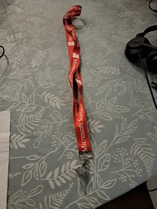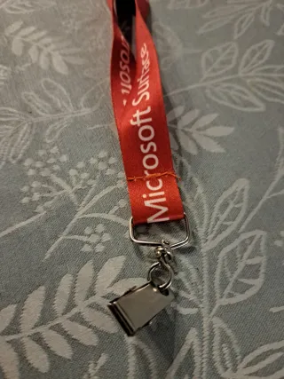 Cordoncino rosso con il logo di Microsoft Surface. Dalla sede ufficiale di Redmond, USA. Design con il logo ripetuto lungo il nastro. Include clip metallico per il fissaggio.