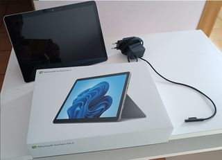 Tablet Microsoft Surface Go 3 in alluminio. Include scatola originale e caricabatterie. Utilizzato pochissimo, batteria e finiture come nuove. - Modello Surface Go 3. - 8GB RAM, SSD 128GB. - Versione WiFi, CPU Pentium Gold 6500Y