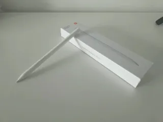 Penna touch intelligente Xiaomi. Design elegante e moderno. Finitura bianca opaca. Sul puntale il rivestimento in plastica è leggermente danneggiato alla base della penna, non influisce sulla precisione o sulla funzionalità, è semplicemente estetico.