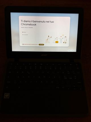 Chromebook Acer in nero e grigio. - Schermo da 11 pollici. - Tastiera QWERTY italiana. - Touchpad integrato. - Processore Intel.
