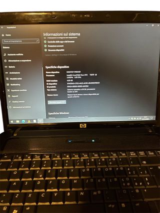 PC Portatile HP 6730s da 15.6 pollici funzionante, in buone condizioni estetiche, batteria da sostituire in quanti dura massimo un'ora, le specifiche tecniche sono: CPU: Intel Core 2 Duo RAM: 4 GB Archiviazione: 250 GB HDD Sistema operativo: Windows 10 con aggiornamenti estesi fino al 2029 Il pc viene venduto pronto all'uso con già tutti i driver e programmi base installati (edge, vlc, libreoffice ecc...), il pc viene venduto senza caricatore e presenta il bios bloccato (non condiziona l'utilizzo dato che è già configurato) CARICATORE NON INCLUSO